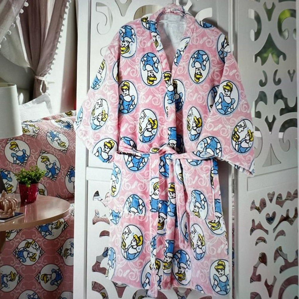 Vista a magia e o conforto com o roupão infantil da Cinderella. Feito com 100% algodão, este roupão oferece suavidade e qualidade para a pele delicada das crianças. Deixe sua pequena princesa se envolver em conforto após o banho ou nas manhãs aconchegantes. Com o roupão da Cinderella, cada momento se torna um conto encantado. Disponível em três tamanhos: Tamanho 1 (3 a 6 anos), Tamanho 2 (7 a 10 anos) e Tamanho 3 (11 a 12 anos)